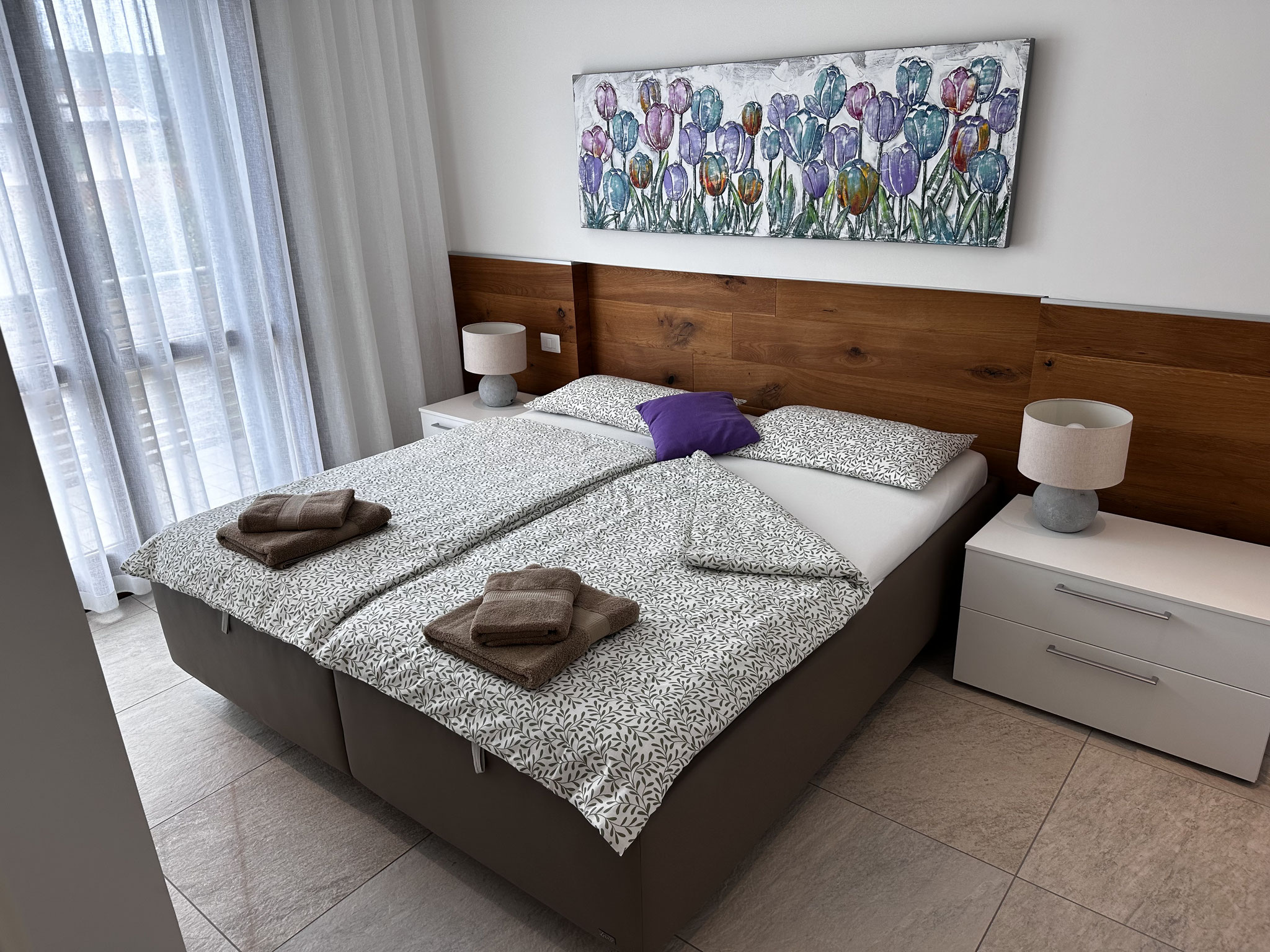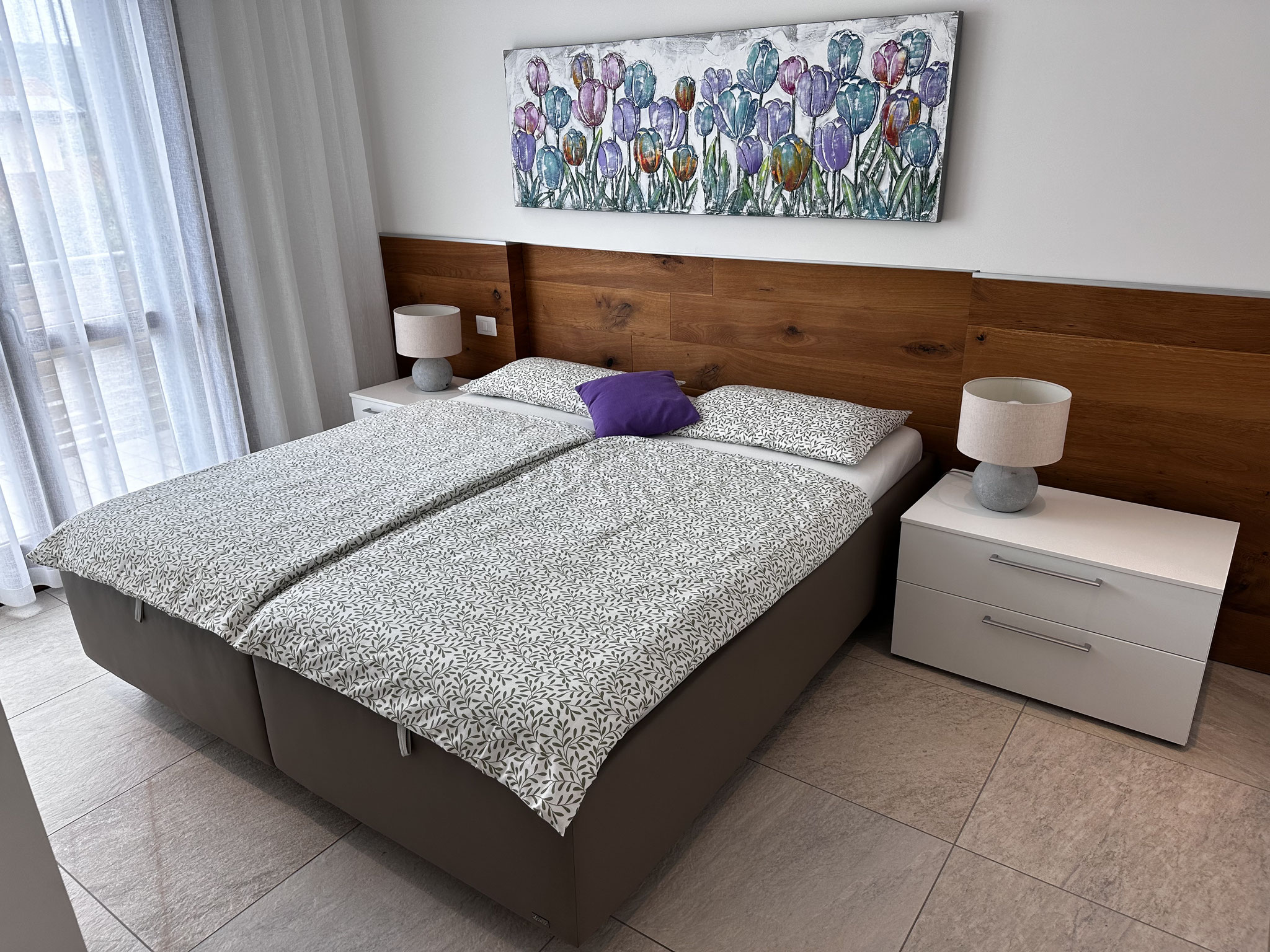 Die Ferienwohnung Rossini ist ganz neu und befindet sich im Obergeschoß und hat ca. 55 qm. Die moderne Gestaltung in hellen und warmen Farben ist angenehm und trägt zum Wohlfühlen bei.
